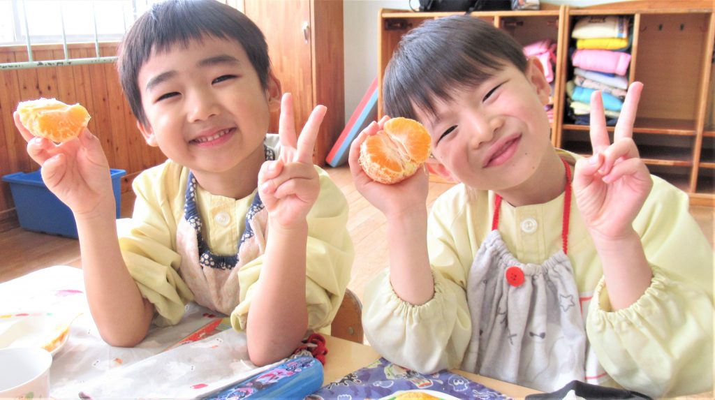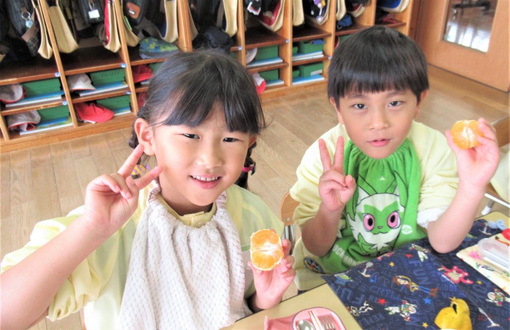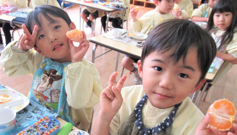 収穫したみかんを食べたよ(年長) By sakura_jikeiyouchien_master_admin2025年11月12日 上top_image・園のできごと 内 先日収穫したみかん🍊を食べた年長さん。 皮をむいていくと保育室中に甘酸っぱいにおい🍊が広がりました。「おいしいかなぁ」と友達と話をしながら口に入れると「あ、おいしいね」「あまいね」と嬉しそうに食べていました😁