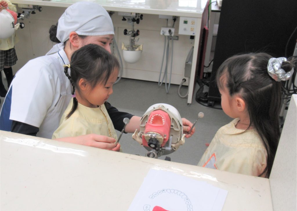 また、模型を使って虫歯さがしも体験することができました。優しくていねいにお姉さんたちに教えてもらった子どもたちは「楽しかった!!」と嬉しそうでした😊