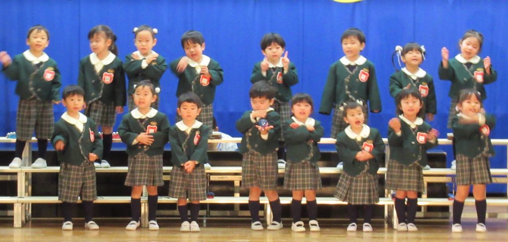 年中になり鍵盤楽器も加わり、ピアノの音や友達の楽器の音を聞きながら、合奏することができました。また、言葉を大切にしながら歌うこともでき、お家の人たちからはたくさんの拍手👏をもらうことができました。