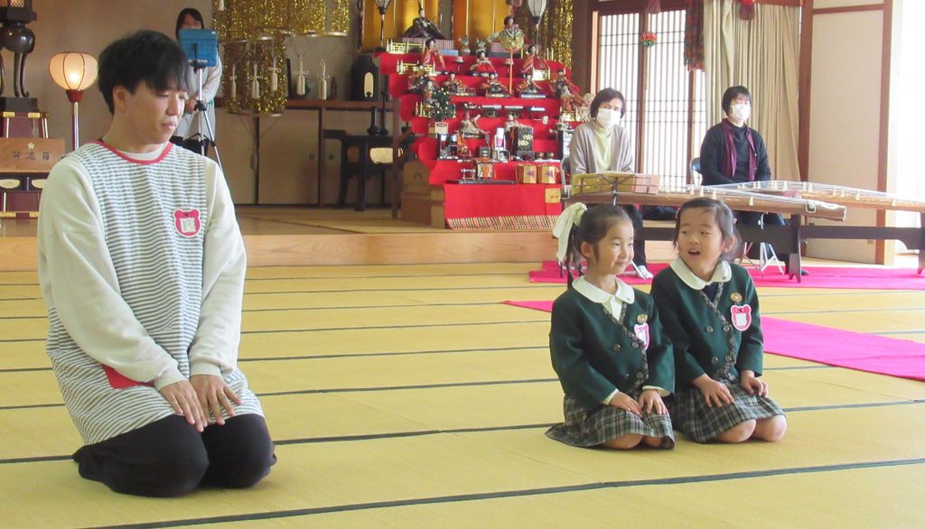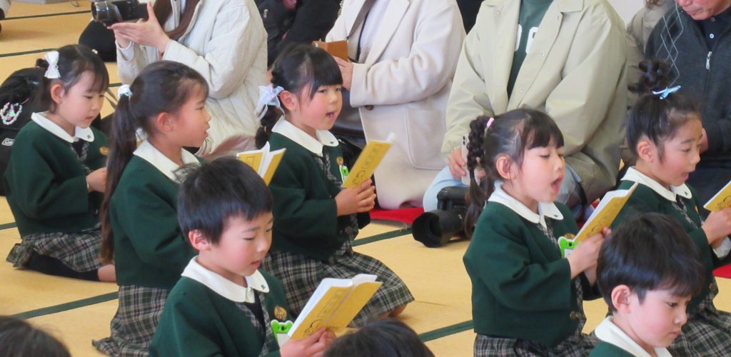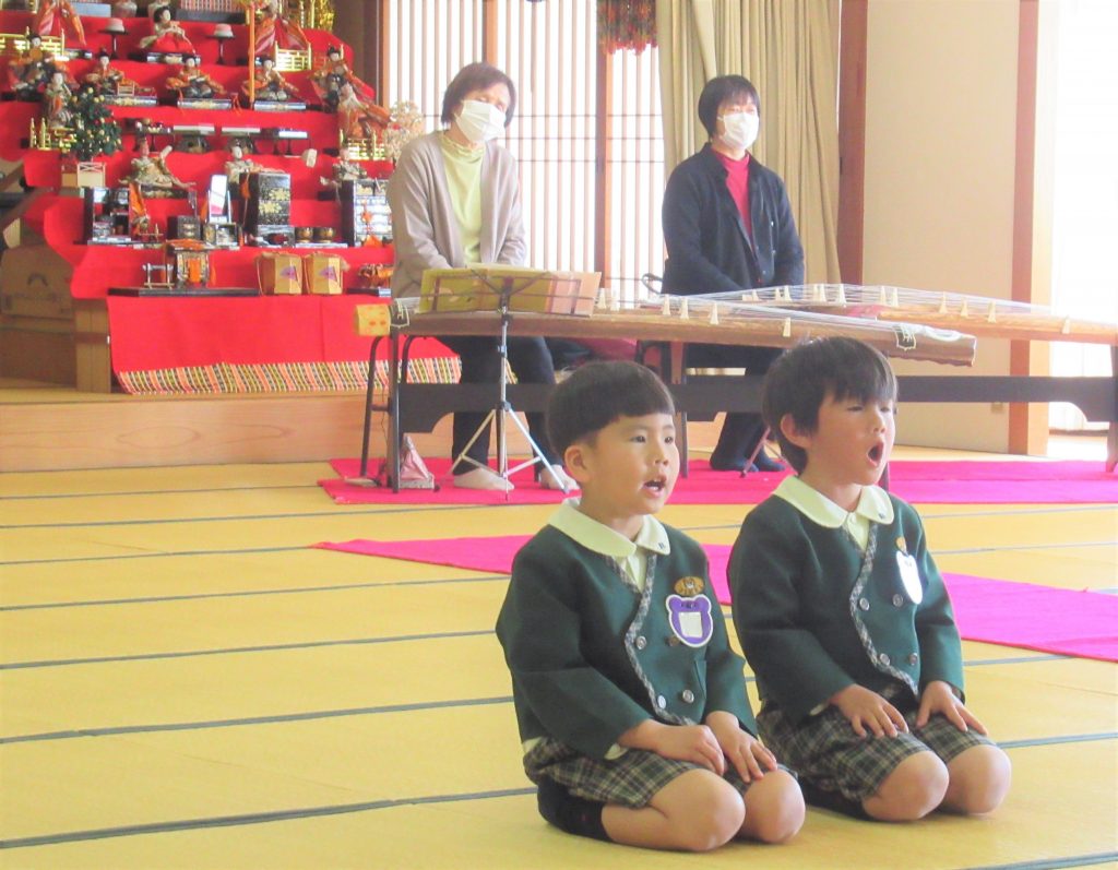 3月5日、6日 年長さんが1クラスずつ旅立ちマナーを行いました。ここまで大きく育てていただいたお家の方をお招きし、感謝の気持ちを込めておもてなしをしました。
