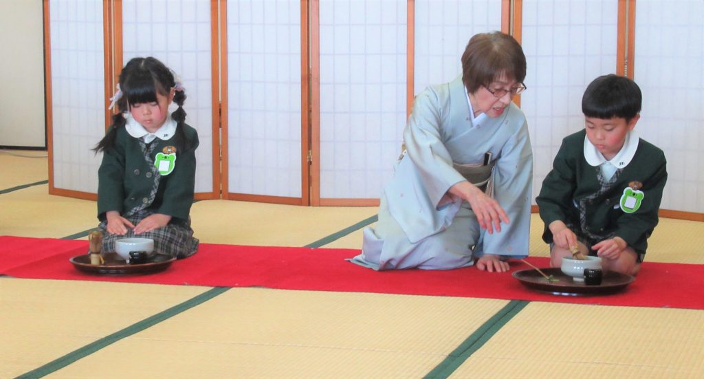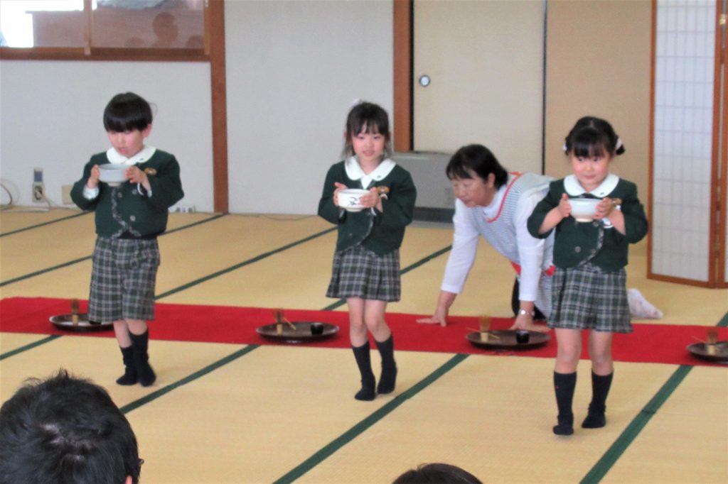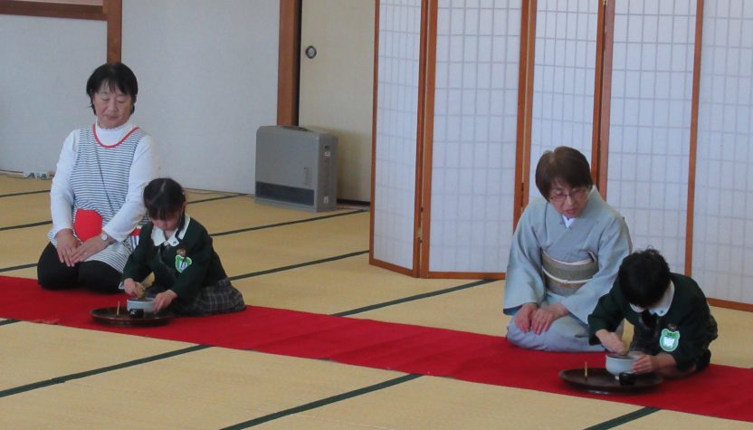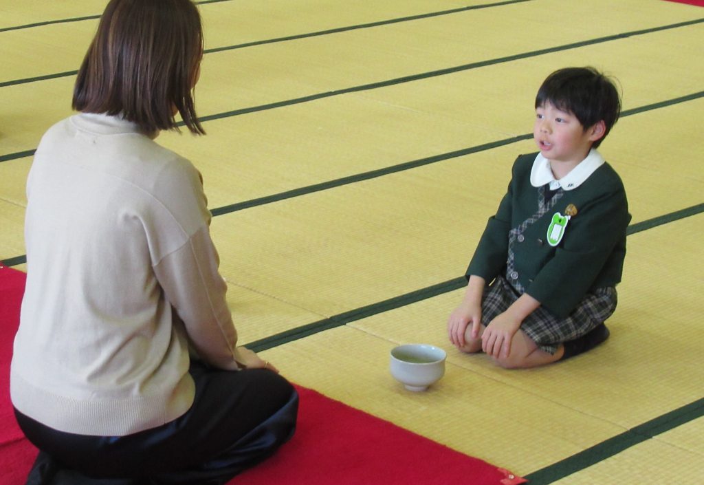 また、お茶道具を使って練習した時には、上手にできなかった子もいましたが、お家の方の前では少し緊張しながらも、上手におもてなしすることができ、大きく成長した姿も見ていただくことができました。